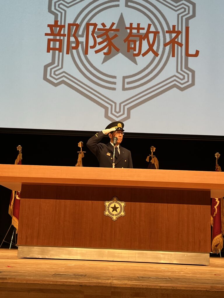 実は私、少し制服フェチなところがありまして(笑)、正装を見るとついドキッとしてしまいます。消防局の皆さんの制服姿や、隊員のビシッとした立ち姿を見ると本当に惚れ惚れします!また、この日は札幌市長も最高責任者として消防の正装をされるため、市長の姿にもついドキッとしてしまいました。